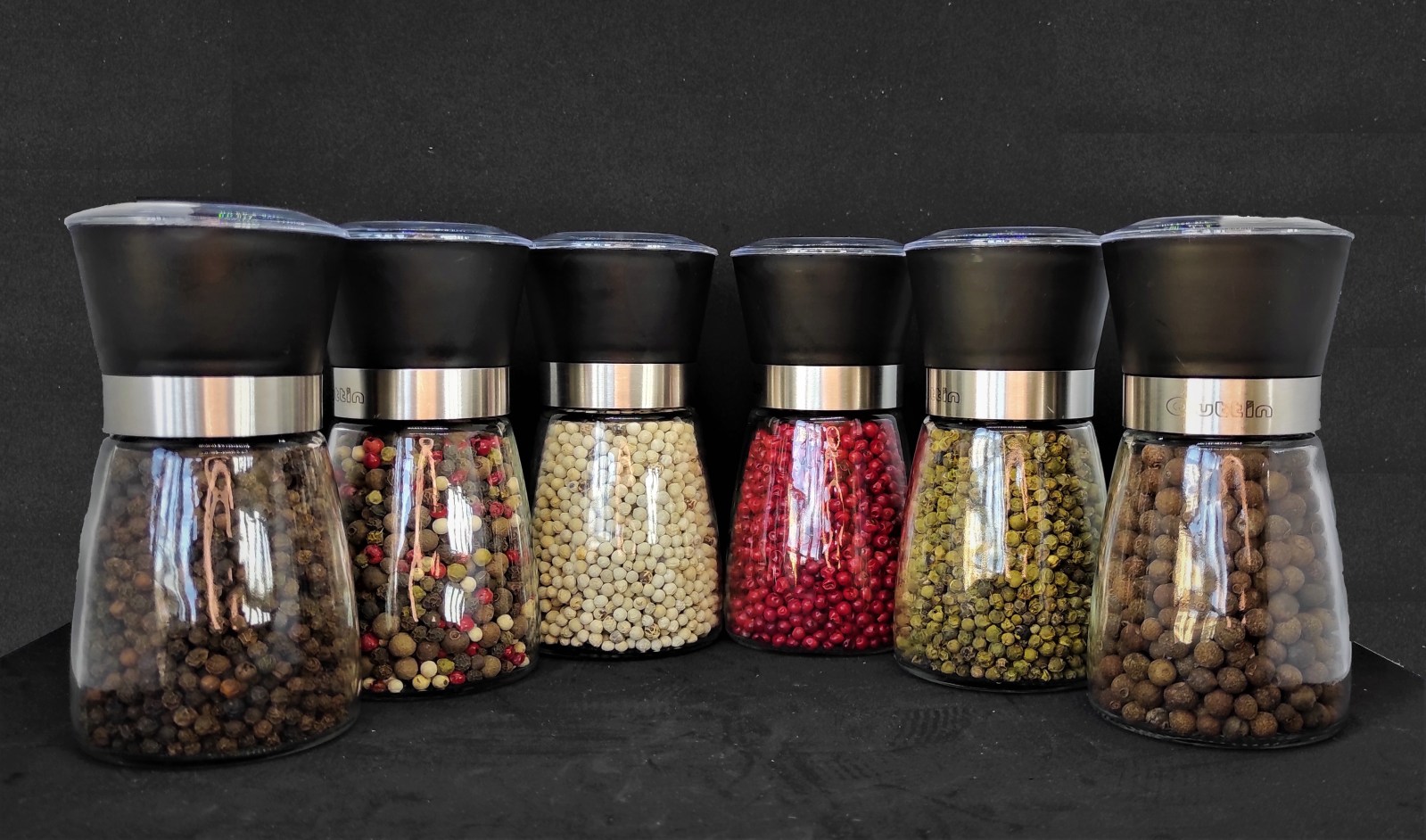 Disponemos de 7 variedades de pimienta en un molinillo regulable de cerámica.